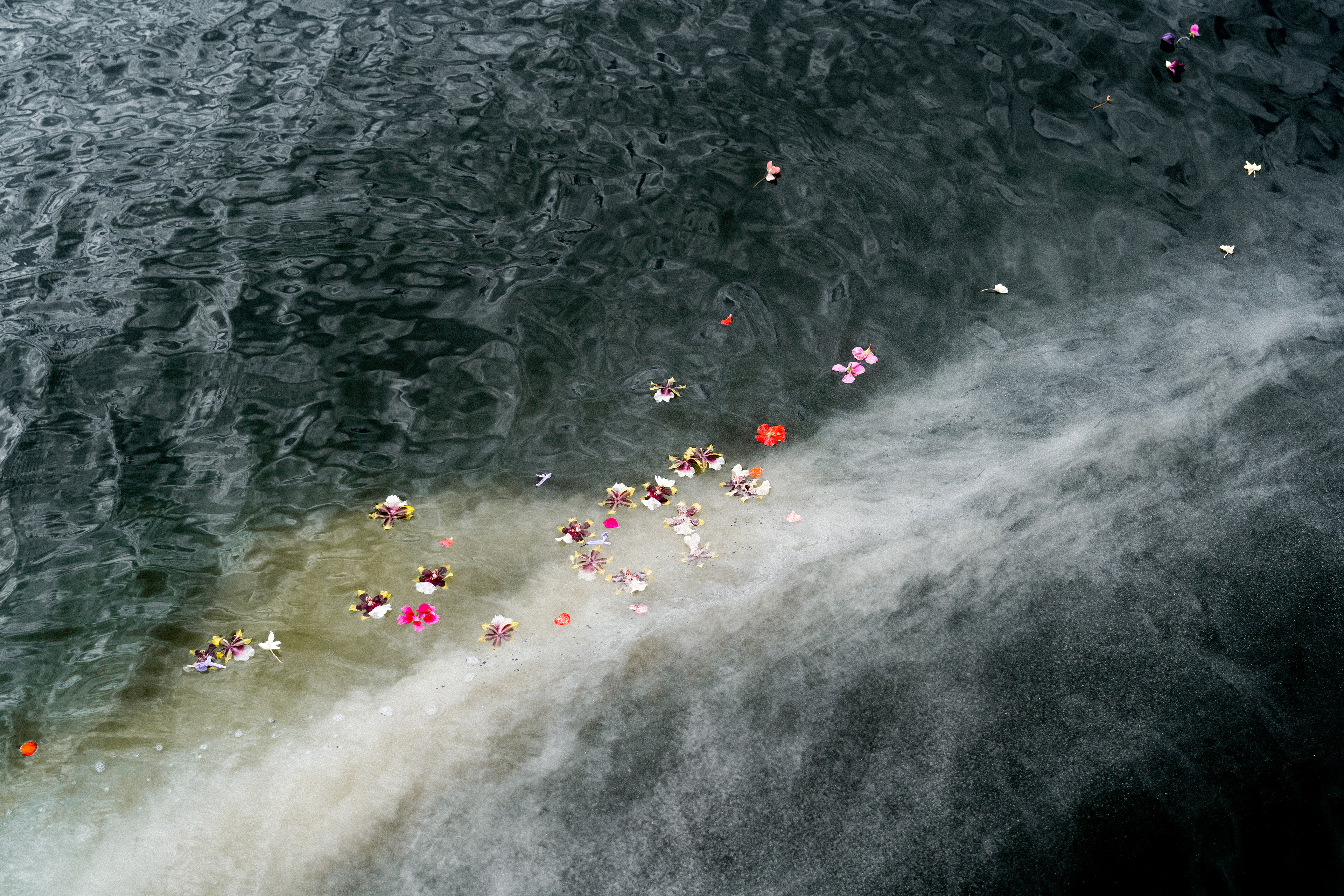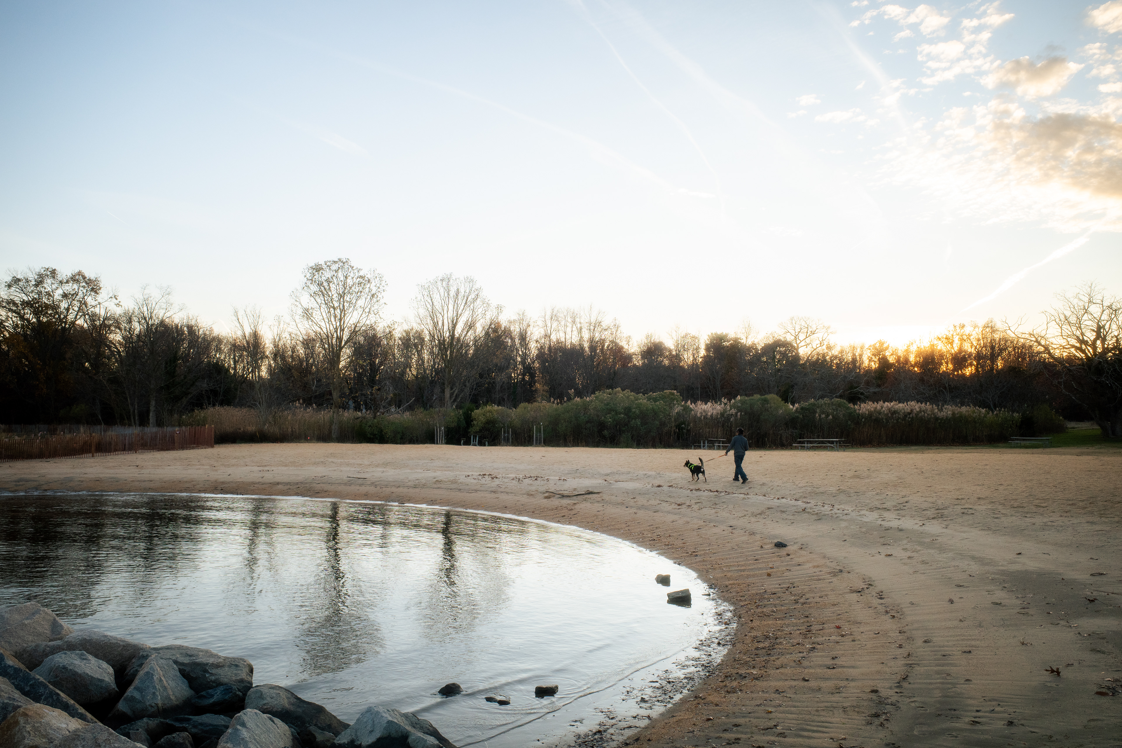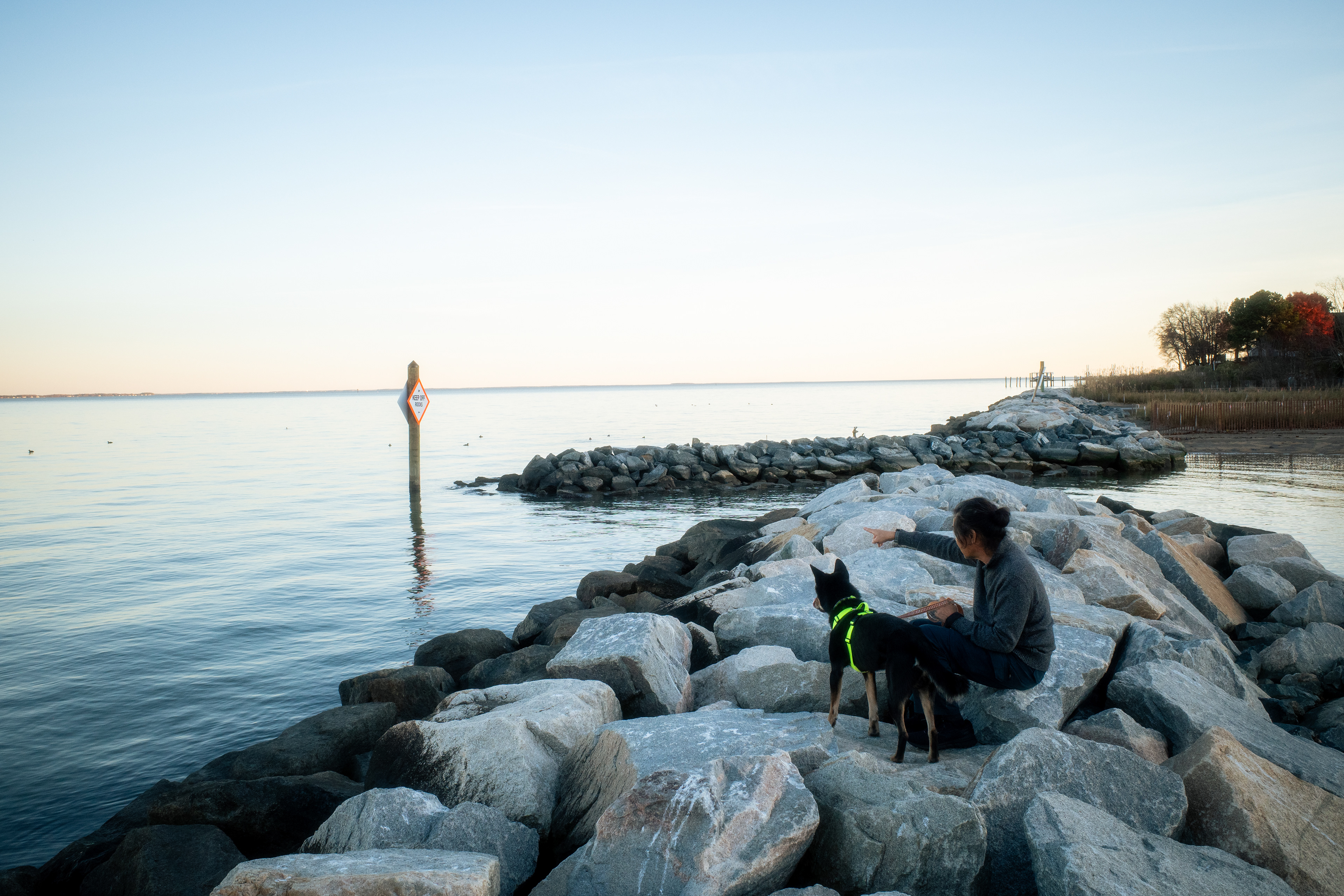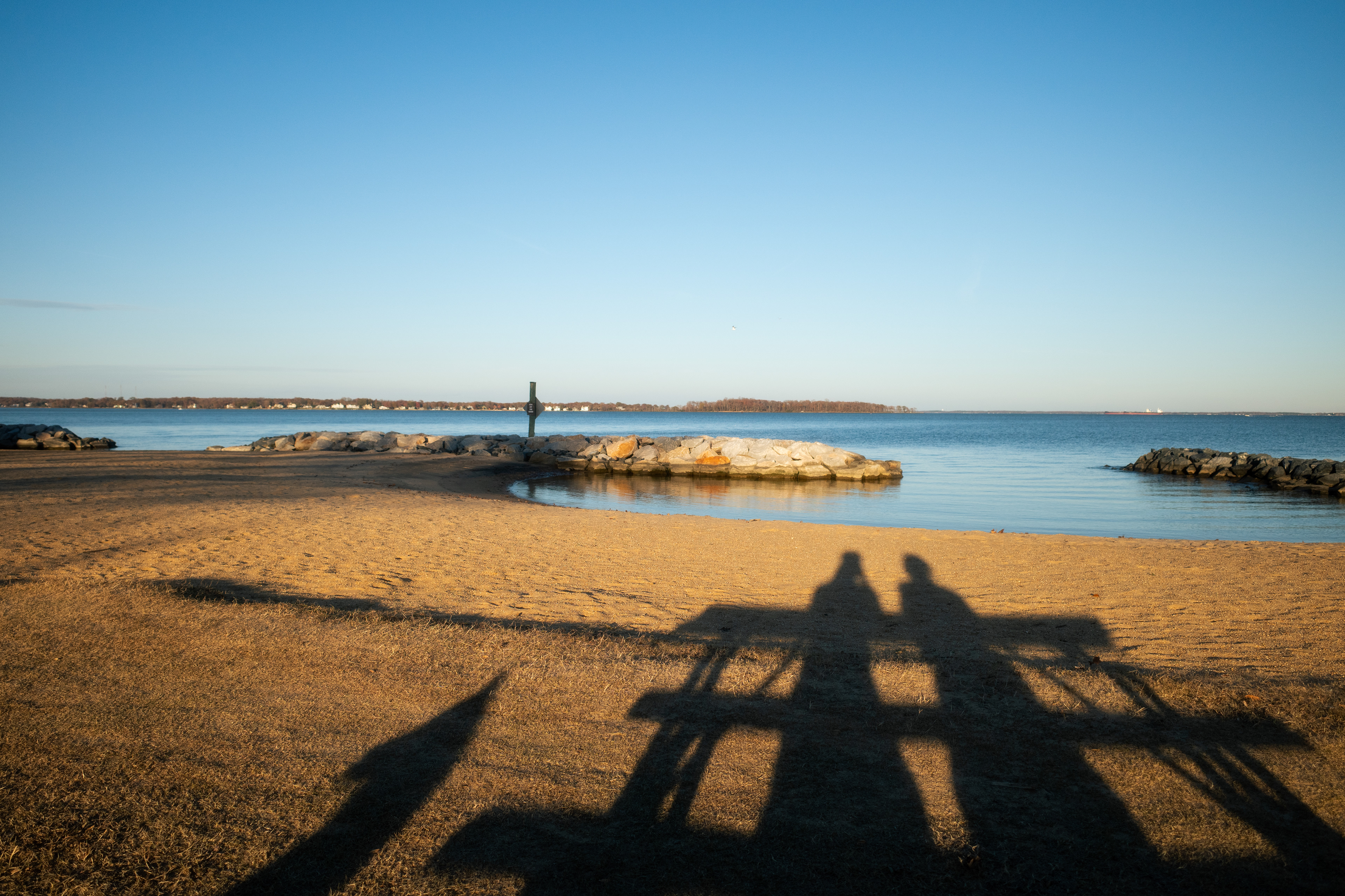 Waves gently stroke the shore in places we won't walk